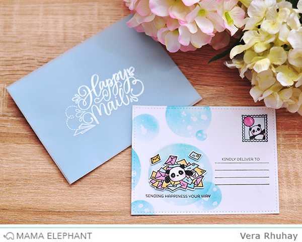 Hello crafty friends! Today I have a set of card featuring Mama Elephant Incoming Mail stamp set along with the coordinating die cut. Here, I created postcard set with vellum envelope.