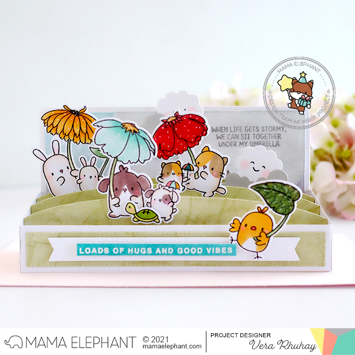 Here, I paired with the new Mama Elephant Flower Shower stamp set and some Little Agenda series to accompany them for a stroll in the garden with their cute flower umbrellas ♥